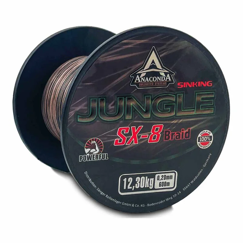 Extra dicht geflochten und schnell sinkend , dass sind Eigenschaften die die neue Jungle SX-8 knapp und präzise beschreiben. Gerade wenn man hindernisreiche Spots befischt, benötigt man viel