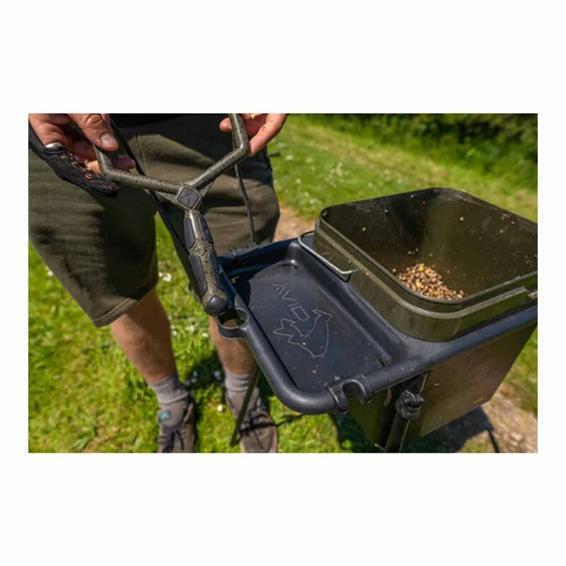Das Anfüttern und Spodden kann eine mühsame Aufgabe sein. Doch mit Hilfe der Bait Station gehört das nun der Vergangenheit an. Das neue Top-Design ermöglicht maximale Sicherheit sowohl bei 10- als auch bei 17-Liter-Eimern. Egal ob Sie Boilies auswerfen oder Spodden bis zum Horizont, mit der Bait Station sind Sie bestens gerüstet. Die neue Seitenablage bietet den perfekten Platz um den Fingerschutz, Spods und andere Gegenstände die Sie beim Spodden oder Anfüttern benötigen, griffbereit aufzubewahren. Das neue Design der Rutenhalterung verhindert das Verrutschen der Rute beim Befüllen der Spod und ermöglicht ein kompakteres Packmaß, so dass der Aufsatz in vielen Gepäckstücken wie Tragetaschen, Rucksäcken oder Schubkarrentaschen untergebracht werden kann.