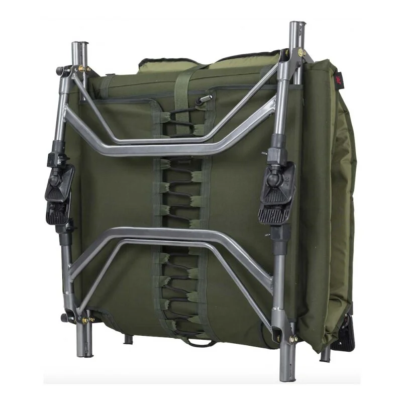 Aufgrund des leichten, aber äußerst stabilen Rahmens aus Aluminium kann das Kompakt-Modell des Levelbeds von JRC komplett flach gestellt werden, sodass Kopf, Rumpf und Beine des Schlafenden auf einer Ebene liegen. Außerdem wurde bei der Rahmenkonstruktion auf den Einsatz elastischer Materialien verzichtet. Dadurch wird das Gewicht auf der Liege gleichmäßig verteilt und sie lässt sich ordentlich zusammenfalten für den Transport. Das Cocoon 2G Levelbed Compact verfügt über eine extra stark gepolsterte Matratze mit luxuriösem Wildlederfinish, die äußerst komfortabel und bequem ist. Die Angelliege verfügt über Laschen in Übergröße, sodass Schlafsäcke in jeder Länge problemlos an ihr befestigt werden können. Für zusätzliche Stabilität und ein einfaches Handling sorgen große Leg-Locks. Große und maßgefertigte Schlammfüße mit Kugelgelenk bieten auch bei schlammigem Untergrund sicheren Halt. Eine Tasche mit Reißverschluss, in der Wertsachen oder andere Utensilien verstaut werden können, ist in die Angelliege eingearbeitet. Darüber hinaus verfügt das Cocoon 2G Levelbed Compact über ein integriertes Kopfkissen am Kopfende.