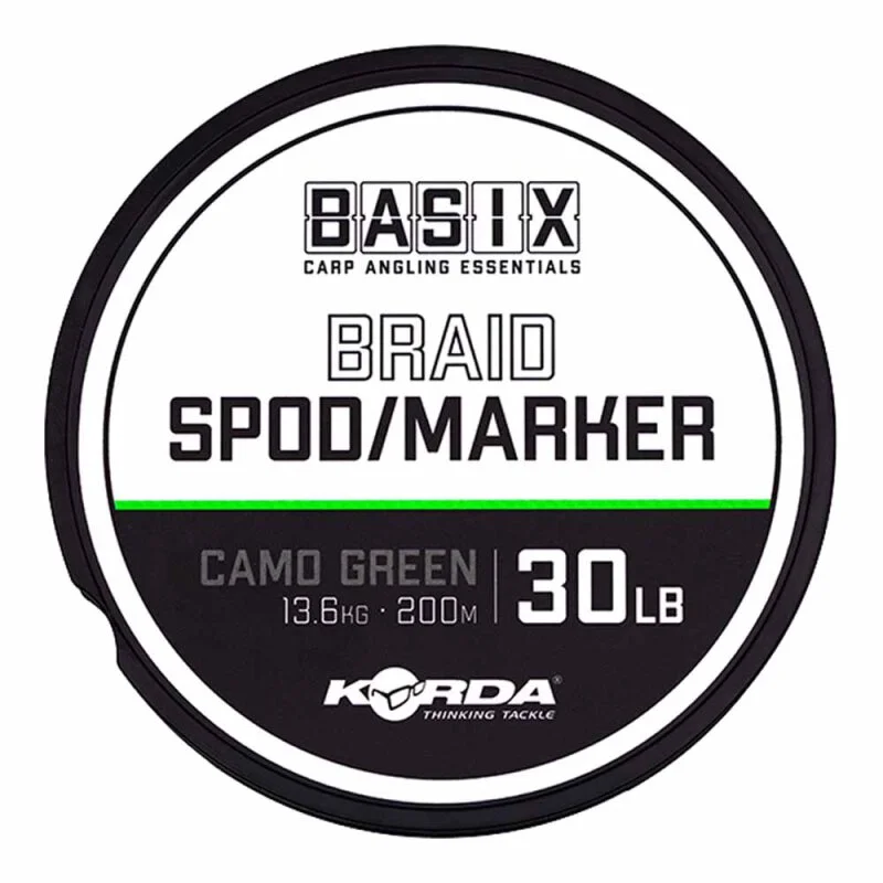 Basix Spod/Marker Braid kann zum Auffinden von Features unter Wasser oder zum füttern mit einer Spod/Spomb verwendet werden. Dieses schwimmende Geflecht eignet sich perfekt für die Verwendung an einer Marker-Rute, da es keine Dehnung aufweist und es Ihnen so ermöglicht, Ihr Blei besser zu spüren, wenn es über den Grund des Gewässers gleitet. Durch den geringen Durchmesser im Vergleich zur Tragkraft von 30lb lässt es sich sehr leicht auswerfen und mit minimalem Kraftaufwand lassen sich auch große Wurfweiten erzielen. Aufgrund der Tragkraft kann man sie ohne Leader verwenden, was sie viel benutzerfreundlicher und einfacher in der Handhabung macht.