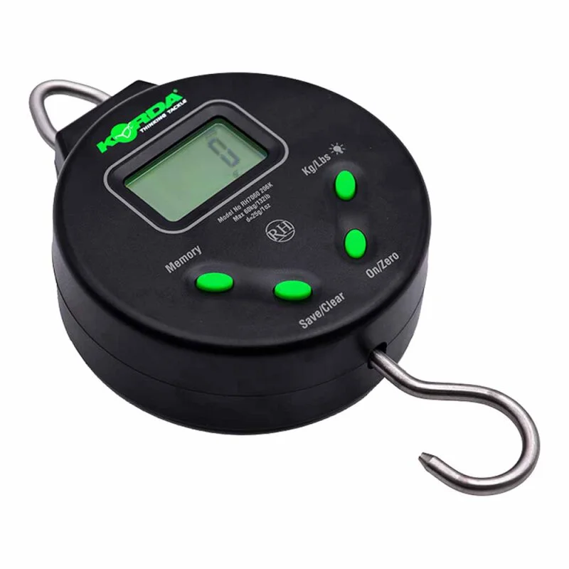 Die Waagen sind wasserdicht, stoßfest und mit Edelstahlbeschlägen ausgestattet, so dass sie den harten Bedingungen am Wasser unter allen Umständen standhalten. Die Waage wiegt Fische bis zu einem Gewicht von 132 lb/60 kg in einer Unterteilung von 1 oz/25 g. Das Gewicht ist über das LCD-Display leicht ablesbar. Für den Einsatz bei Nacht verfügt die Waage außerdem eine grüne Hintergrundbeleuchtung.