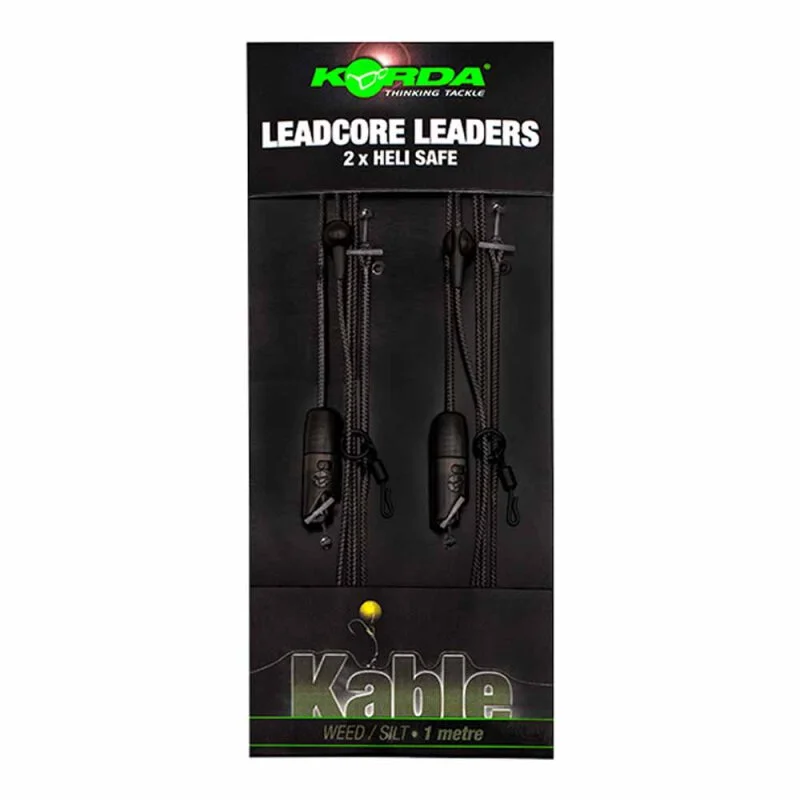 Die Kable Heli-Safe Leadcore Leaders sind erhältlich in zwei Varianten: Gravel/Clay oder Weed/Silt mit jeweils zwei Stück je Packung, sowie je: 2x Ersatz-No-Trace Beads, 2x Mini Heli-Safe Platzhalter, 2x Mini Heli-Safe rote Feder.