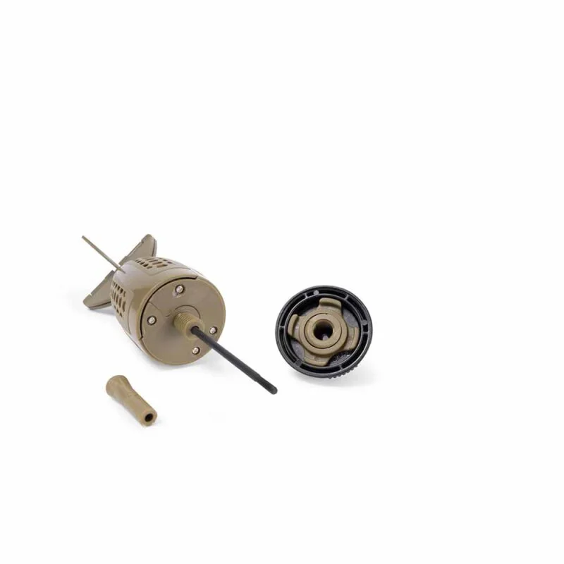 Der Korum Bopper verfügt über ein einzigartiges Beschwerungssystem, bei dem austauschbare Gewichte verwendet werden können, um die Tauchgeschwindigkeit und das Gewicht des Boppers anzupassen. Dies funktioniert mit einer internen Ladeöffnung, die im Nasenkonus versteckt ist. Die Gewichte haben die Form eines Doughnuts und werden auf den inneren Schaft geladen. Sie können mit dem kleinen Drehrad im Nasenkonus arretiert werden. Damit haben Angler zum ersten Mal die Möglichkeit, das Gewicht ihres Bait Droppers fein abzustimmen. Darüber hinaus ist der Bopper selbst sehr aerodynamisch gestaltet, mit einer raketenartigen Form, die stabil im Flugverhalten ist und schnelles Absinken garantiert. Die Flossen am hinteren Ende stabilisieren den Bopper, was bedeutet, dass Sie sehr präzise werfen können.