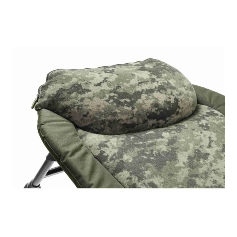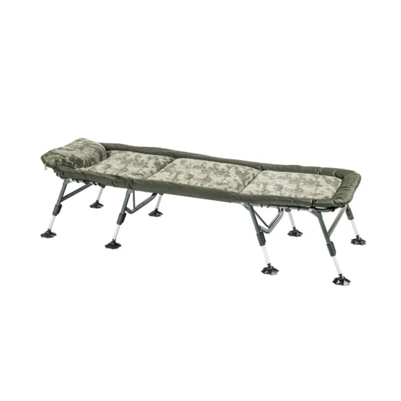 Ein leichter und voll flacher Bettrahmen, mit einer Liegefläche im CamoCODE Design. Die dicke, mit Fleece bedeckte Matratze ist unglaublich bequem und das Spannsystem darunter ermöglicht eine individuelle Anpassung zur Härte der Liegefläche. Ein Premium-Vorteil dieses Modells ist die maximal einstellbare Höhe, so entsteht Stauraum zur Aufbewahrung von Taschen und anderen Ausrüstungsgegenständen. Die Beine der Liege sind mit großen Schlammfüßen und einem zuverlässigen Verriegelungsmechanismus ausgestattet. Durch einfaches Betätigen der Verriegelung werden die Beine direkt an die Unebenheiten des Bodens angepasst. So wird in Sekundenschnelle die