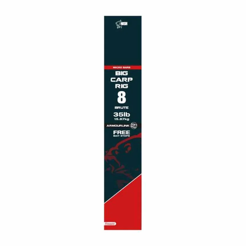Der unfassbar starke Pinpoint „Brute“ Haken in Kombination mit dem extrem abriebfesten Armourlink-Vorfach-Material. Für herausfordernste Situationen und allergrößte Karpfen, ganz ohne Kompromisse.