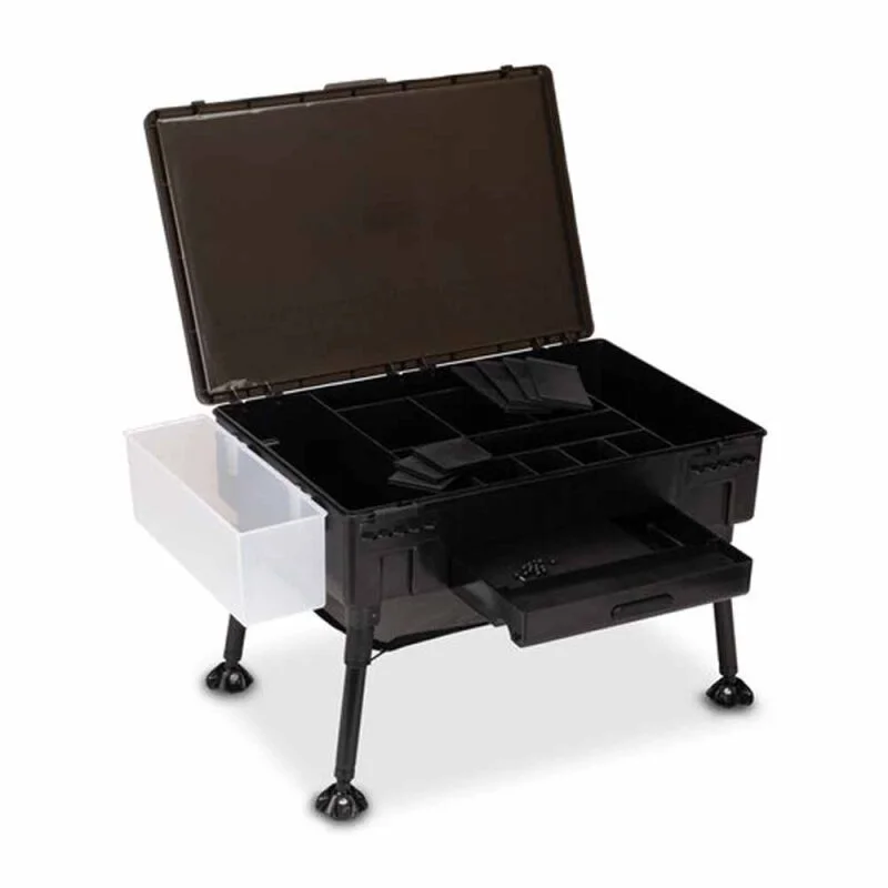 Auf der einen Seite hat man alle erdenklichen Kleinteile wie bei einer traditionellen Tackle-Box zur Hand, auf der anderen Seite hat man ausreichend Aufbewahrungsmöglichkeiten für Spod Raketen, Marker,