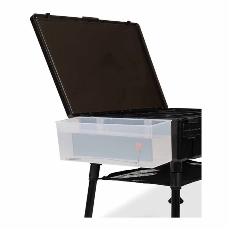 - Beinhaltet einen durchsichtigen, anclippbaren Wassertank, um Rig-Präsentationen zu testen oder für die trockene Aufbewahrungen von vorgefertigten PVA-Sticks oder Bags.