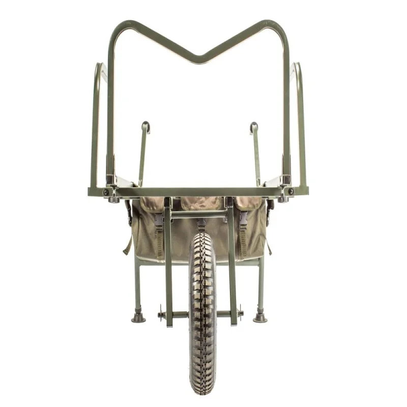 Ein robuster, gut ausbalancierter Transportkarren für sämtliches Session-Kit. Integrierte, unter dem Barrow befindliche Stau- Taschen.