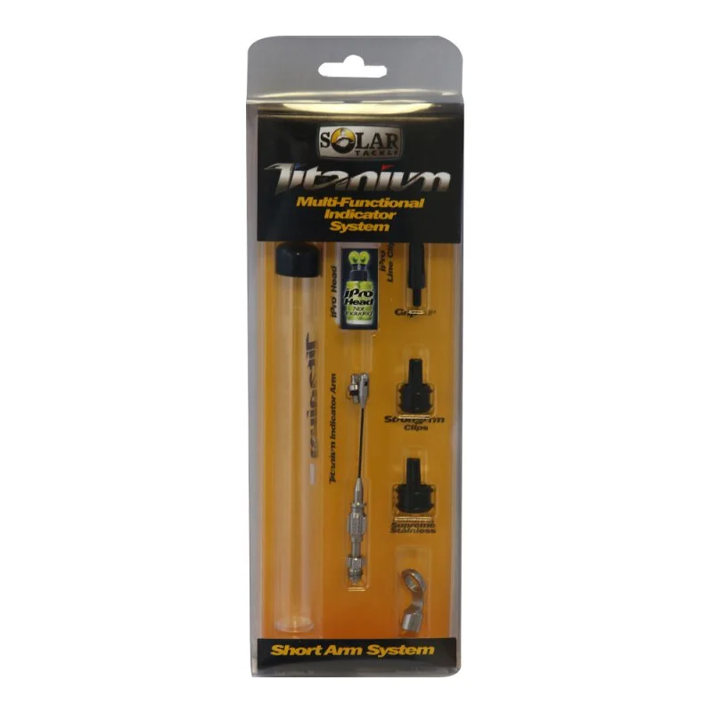 Das, in Großbritannien entwickelte, Titantium Indicator System gehört zu den universellsten, optischen Bissanzeiger Systemen des Markts. Dank des präzise gefertigten Systems können alle Situationen eines Karpfenanglers abgedeckt werden. Innerhalb von Sekunden kann das Titanium System auf die jeweilige Situation eingestellt werden. – Egal, ob Slack oder Tight Line oder aber Long Range Style – Das Bissanzeiger-System eignet sich für alle. Der Arm kann auf frei schwingend sowie auf Spannung mit Hilfe des Gewindes gestellt werden. Ein weiteres Feature ist das extrem flexible und dennoch enorm stabile Material aus Aero-Space Metall. Dank des doppelten Chain-Link Gelenks wird für Sensitivität gesorgt und der Indicator Kopf kann immer im 90° Winkel zur Schnur stehen. Abgerundet kann man den Solar Tackle Titanium als wohl einer der Besten Bissanzeiger System überhaupt sehen.