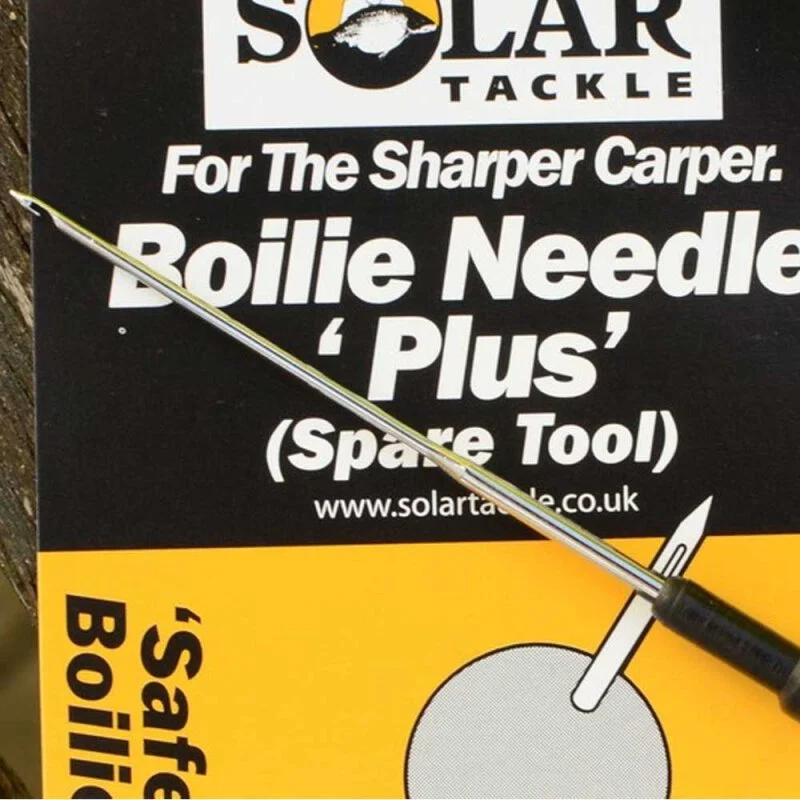 Die Boilienadel von Solar wurde komplett überarbeitet und das Griffstück wurde noch griffiger gestaltet. Der Körper der Ködernadel ist hohl und beinhaltet einen Strang Solar Boilie Stops.