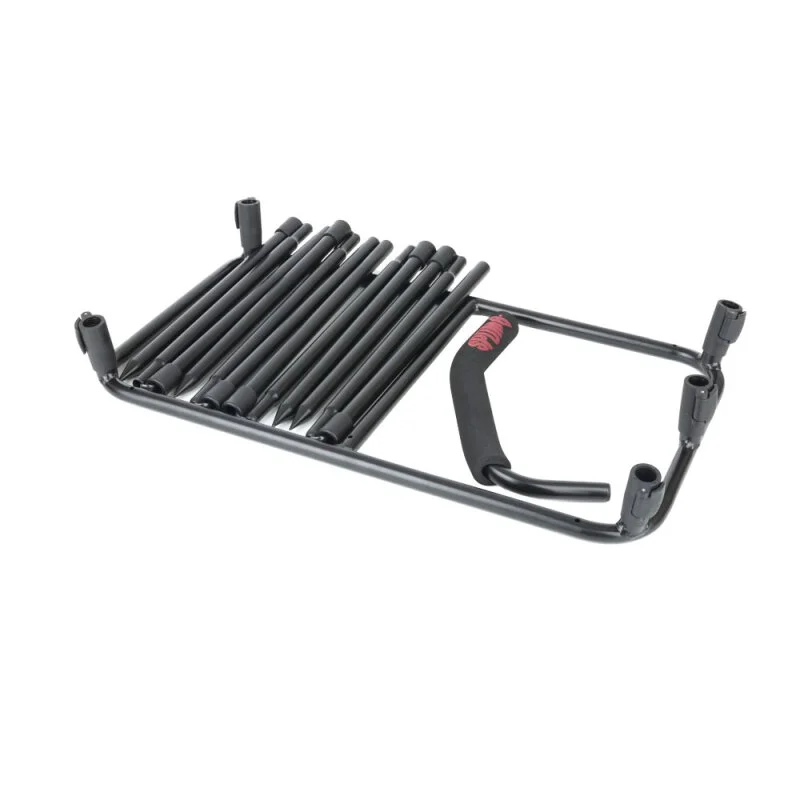 Kompakte Komplettlösung zur Aufnahme von zwei Eimern auf der perfekten Höhe, sodass man sich zum Befüllen der Spomb™ oder Fox Impact Spod™ nicht bücken muss.